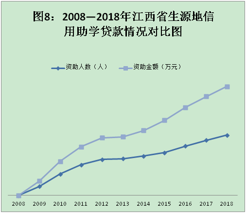6.生源地信用助学贷款。生源地信用助学贷款共审批通过13.35万人,金额10.75亿元,申贷人数和受理金额均连续十一年创新高。此项资金全部由银行贷款(图8)。