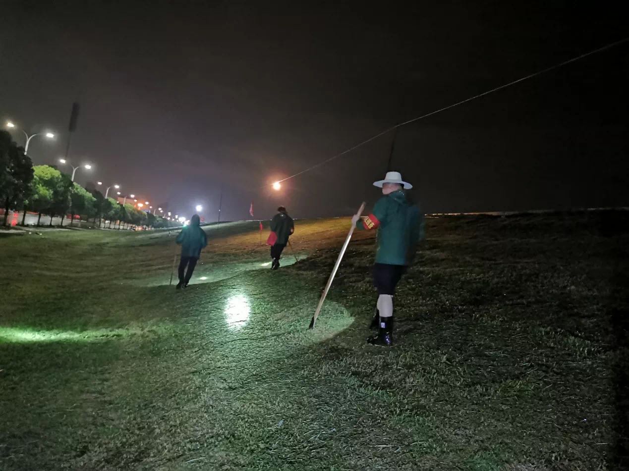 值守党员干部采取三班倒,按时到岗,一日三餐由专人送到防汛点。“晚班女同志休息,男同志上!”通宵值守,男同志义无反顾。雨夜巡堤时,大雨淋湿了衣服,大风吹翻了雨伞,他们克服种种困难,坚守堤坝,保证交班人员无缝对接,全力做好彻夜巡堤防汛工作。