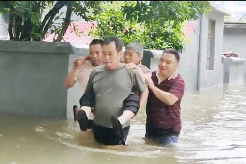 得知因河水倒灌,九江职业大学老农校家属宿舍区一楼住户房间全部进水,校领导和党政办、鹤问湖校区管委会、后勤处人员立即来到现场,开展救助和排险工作。在挨家挨户进行转移通知时,发现有两名住在一楼的老人,独自在家,大家齐心协力,帮助他们转移到安全区域。