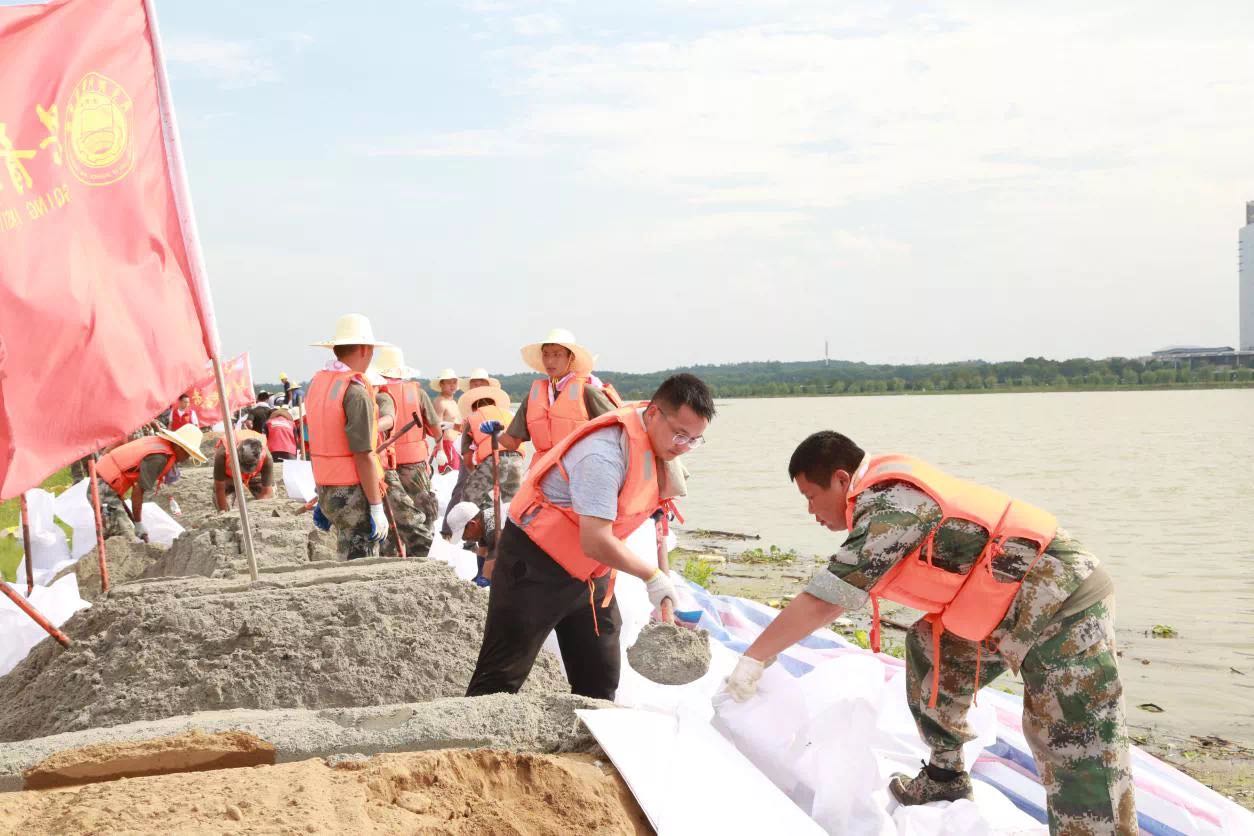 7月11日,南昌大学共青学院党员职工在共青城市政府的号召下积极应战,迅速组成“党员突击队”,高举鲜红的旗帜赶往抗洪一线,构成了靓丽的红色风景线。