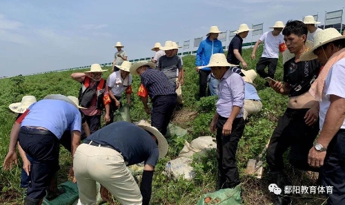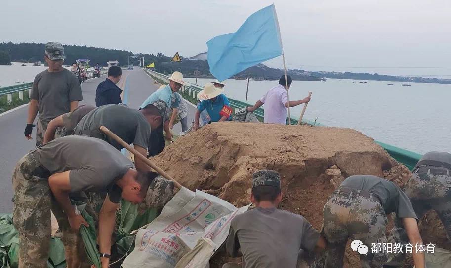 根据县防汛抗旱指挥部的部署,县教体局三支抢险突击队分别在珠湖联圩、古县渡碗子圩、饶河联圩参加抗洪抢险。13号上午,珠湖联圩我局责任段出现圩堤渗漏。险情就是命令,值守突击队员立即报告,按照相关要求,迅速行动。一个个冒着酷暑挥铲沙石、传递沙袋、封堵渗漏,大家流着汗、咬着牙坚持,险情终于及时得到有效控制。