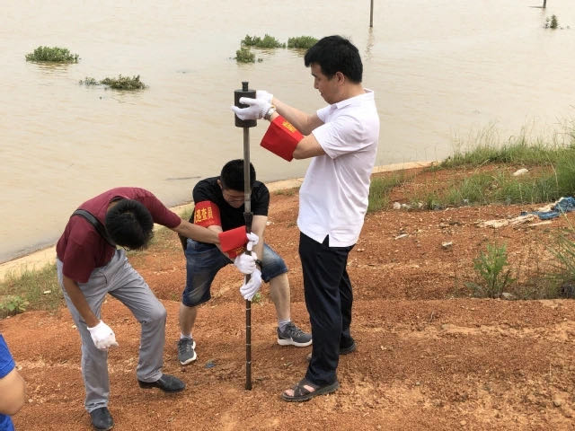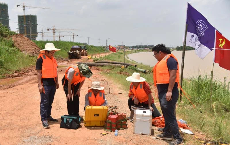 土木与建筑工程学院青年师生突击队充分发挥专业优势,利用专业仪器设备在赣江南昌段进行了现场监测和取样,观测了堤防的形态和尺寸,测定了堤防土体性能,进行堤防在洪水上升、最高水位和下降期的稳定性演变规律,做到“动态掌控、提前预警”,确保堤坝安全。