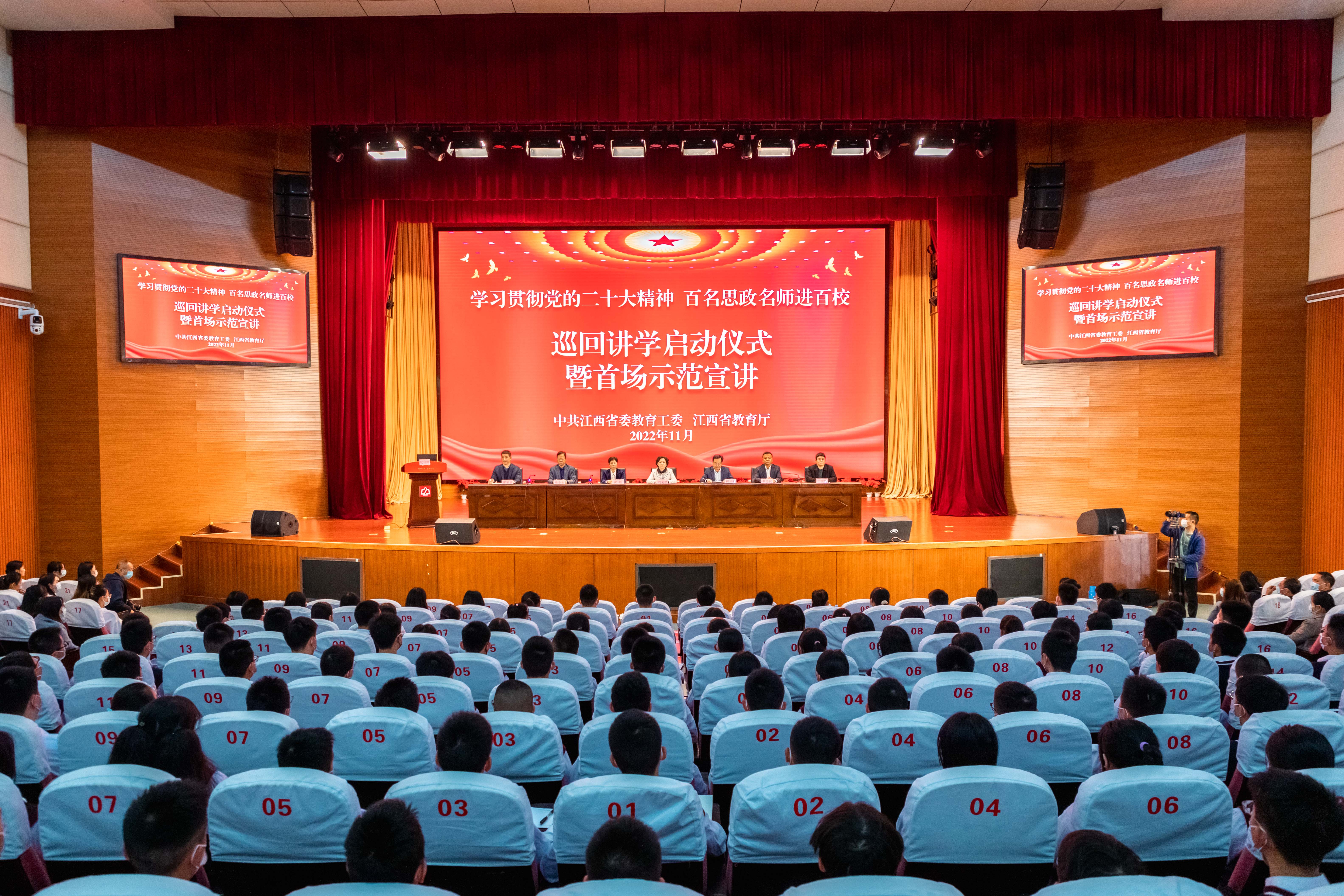 11月22日,省委365体育网址备用_365彩票娱乐平台_365体育投注注册工委、省365体育网址备用_365彩票娱乐平台_365体育投注注册厅在南昌举行全省中小学“学习贯彻党的二十大精神 百名思政名师进百校”大型巡回讲学活动启动仪式。省365体育网址备用_365彩票娱乐平台_365体育投注注册厅一级巡视员刘菊娇出席并讲话。